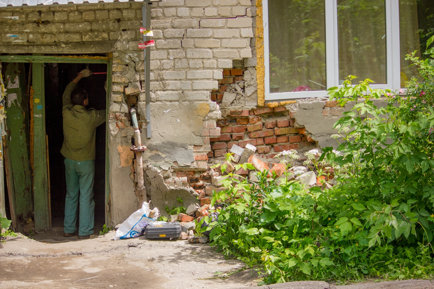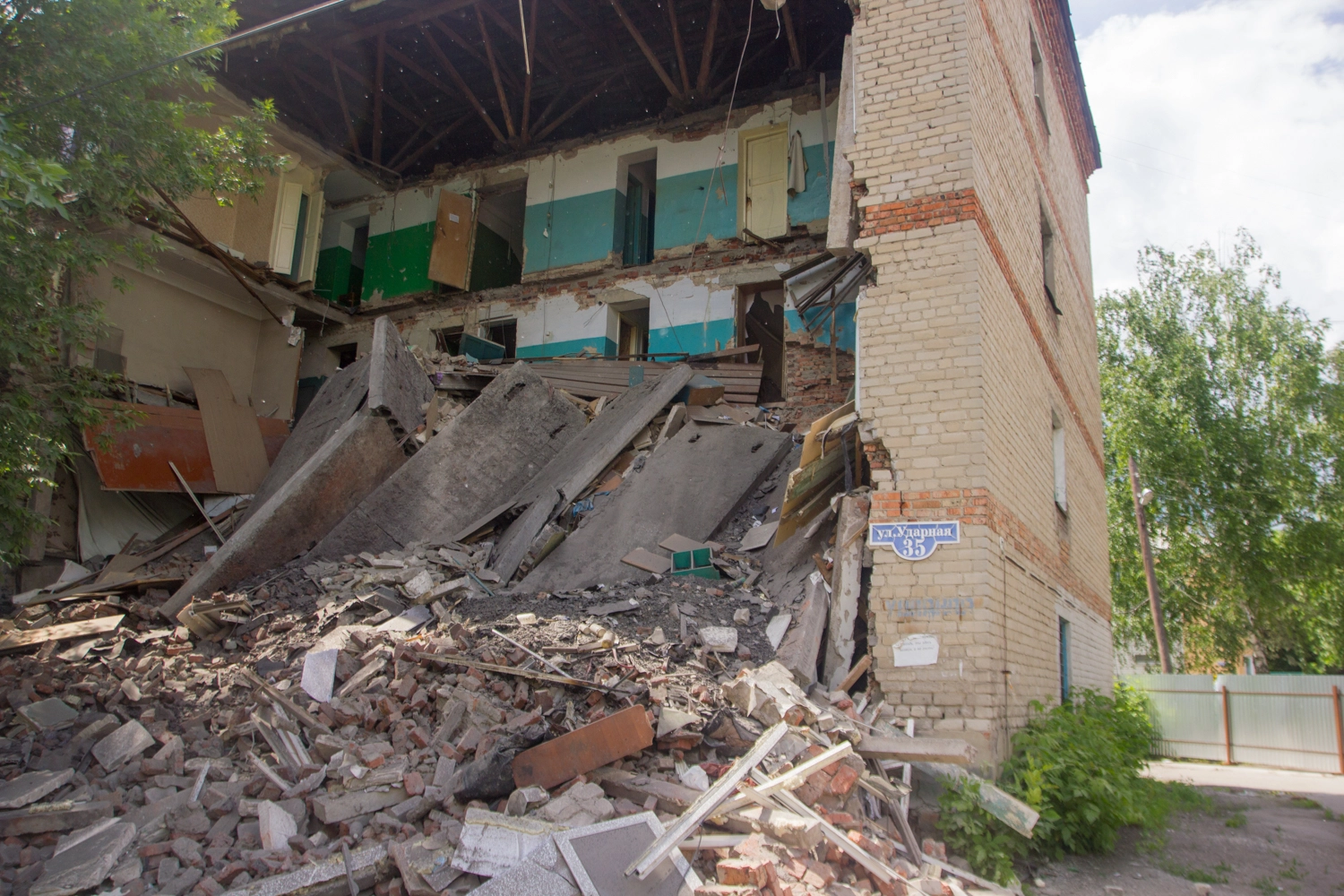 На Ударной, 35 обрушилась стена первого подъезда — фотоотчет