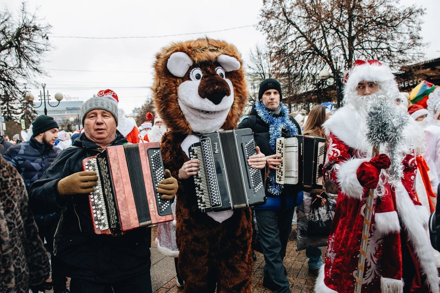 В Пензе с размахом стартовал новогодний сезон. Главным событием дня стало масштабное шествие Дедов Морозов и Снегурочек