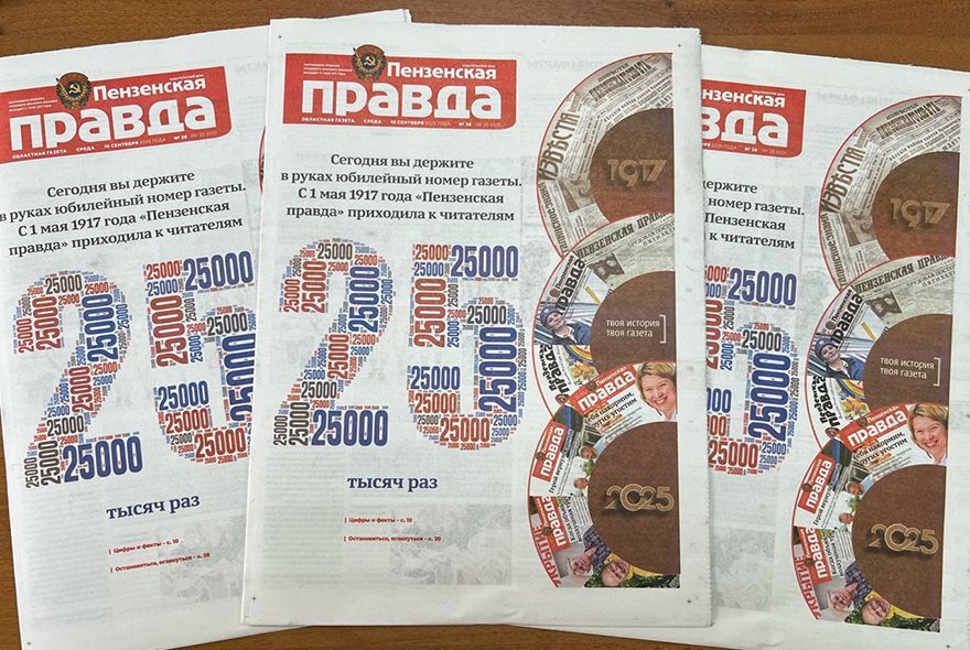 10 сентября 2025 года вышел 25-тысячный номер газеты «Пензенская правда». Приводим важные цифры и факты, связанные с нашим изданием.1 мая 1917 г. вышел первый номер газеты «Пензенская правда» (тогда «Известия рабочих, крестьянских и военных депутатов»). В 1919 г. она переименована в «Красное знамя», в 1921 г. – в «Трудовую правду», в 1932-м – в «Рабочую Пензу», в 1939-м – в «Сталинское знамя». С 1956 г. носит нынешнее название. У всех газет непрерывная нумерация.