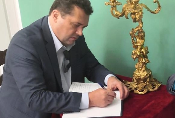 Владимир Геннадьевич и секретарь Союза журналистов России Юлия Загитова отметили уникальность культурного проекта. Владимир Соловьев оставил свой отзыв в книге музея.