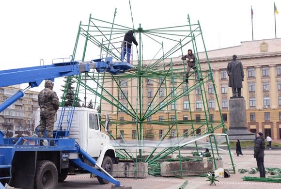Изначально анонсировалось, что зеленая красавица начнет создавать праздничное настроение в центре города с 1 декабря. Но уже сегодня, 19 ноября 2019 года, на площади начал «расти» зеленый каркас.