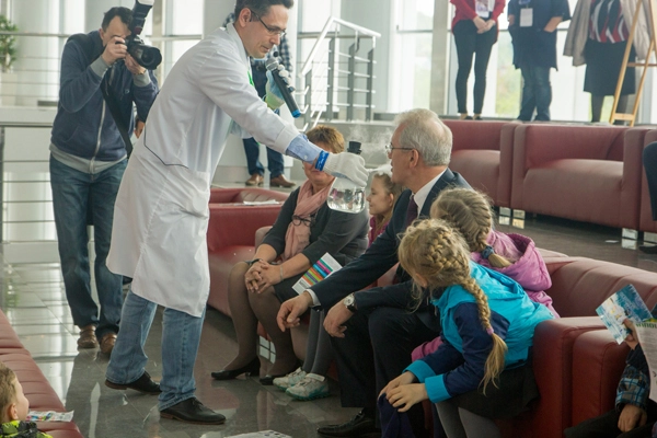К слову, глава региона выступил не только в роли посетителя-наблюдателя — он принял участие в событиях на нескольких площадках. Сначала глава региона снялся в видеоролике зоны «Видео», а затем попробовал «лимонад», созданный в ходе «Научного шоу» (точнее, углекислый газ, который был получен после химических реакций). Компанию в дегустации Ивану Александровичу составили зампред правительства Валерий Беспалов и министр образования области Александр Воронков.