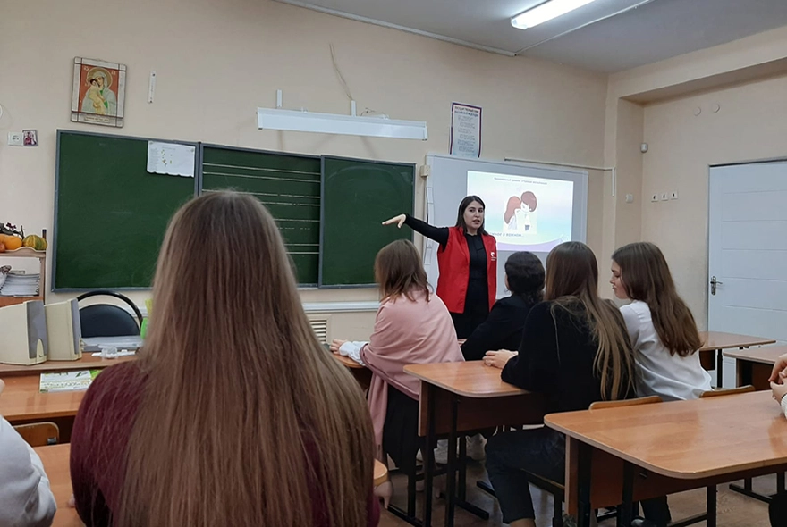 Волонтеры-медики поговорили с девушками о гармоничном женском развитии, методах контрацепции и гигиене.