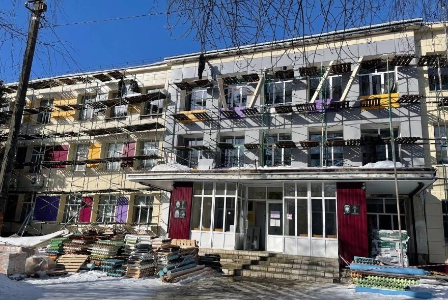 На данный момент объект готов на 40%. Завершен монтаж окон, фасад обновлен на 80%, ведутся внутренние отделочные работы и замена инженерных коммуникаций. 616 учеников временно обучаются в соседних образовательных учреждениях. Срок сдачи объекта – 30 июня 2026 года.