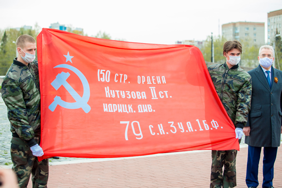 Кроме того, глава региона отметил, что у нас изготовлено более трехсот копий Знамени Победы, которые отправились по муниципалитетам. Там их развесят над каждым общеобразовательным учреждением.