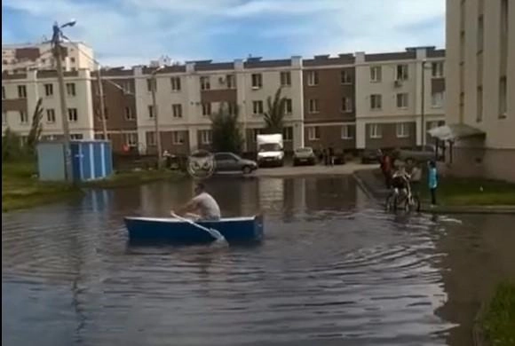 В районе Шуист постоянно подтапливает жилые кварталы. После последнего дождя местные жители переправляются через огромные лужи на лодке. Видео опубликовано в одном из городских пабликов.