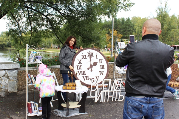 Многих заинтересовала книжная инсталляция «Время — читать», символизирующая актуальность чтения во все времена.