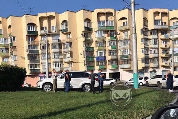 Как видно на снимке, легковушка въехала на зеленый газон.