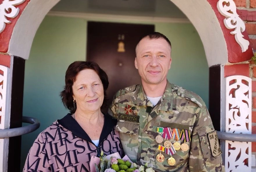 Несколько дней назад у пензенца закончился контракт, и он вернулся на родину. А сегодня побывал в гостях у Натальи Николаевны. Он приехал с букетом цветов.
