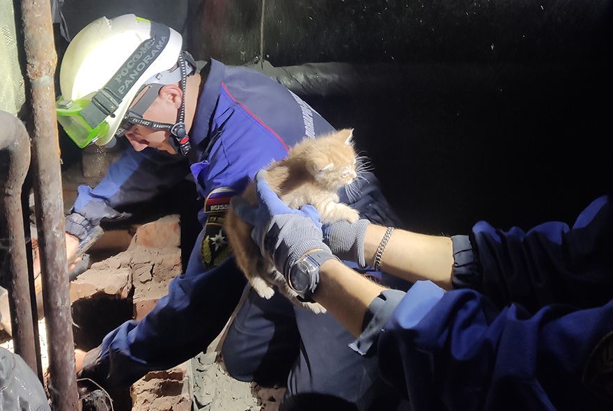 Спасатели, используя перфоратор и шанцевый инструмент, разобрали воздуховод и извлекли из шахты троих котят.