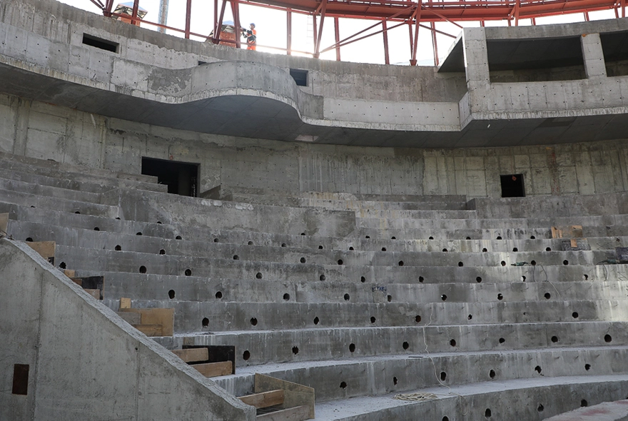 Согласно проекту, в зрительном зале нового здания цирка будет 1 400 мест. Готовность сооружения на конец 2021 года составляла 78,7%.