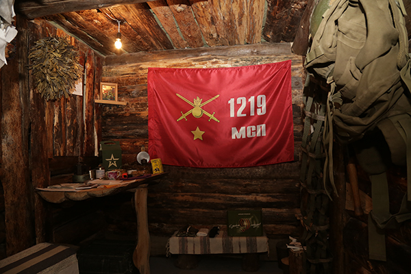 Часть выставки – интерактивный уголок. Это блиндаж, в котором посетители могут ощутить, какого бойцам, живущим в нем.