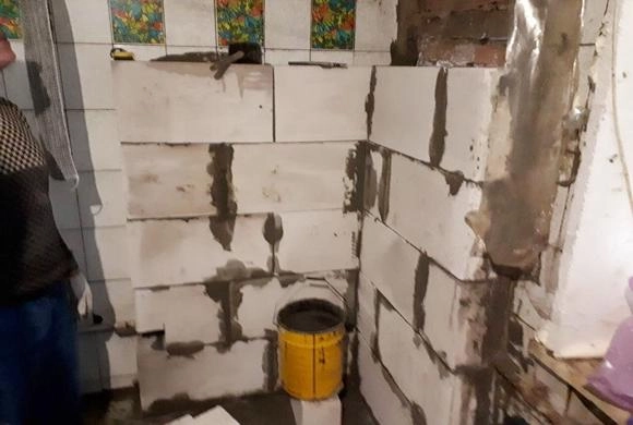 Как сообщает пресс-служба мэрии, они сделали кладку из пеноблока внутри ванной комнаты для восстановления целостности ограждающих элементов этого помещения.