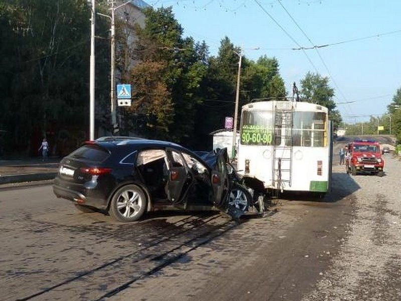 В воскресенье, 19 августа в 7.00 на улице Ленина напротив дома № 19, девушка 1991 года, находясь за рулем «Инфинити» врезалась в стоящий троллейбус «ВЭТМ — 5284».
