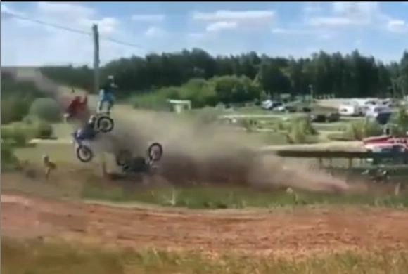 В Instagram-канале penza_info58 опубликовали ролик, на котором видно, как спустя несколько секунд после старта, во время подъема, сразу несколько гонщиков не справились с управлением, столкнулись и в воздухе слетели со своих транспортных средств.