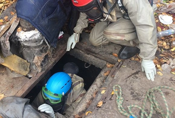 Спасатели в защитных костюмах и дыхательных аппаратах спустились в колодец. С помощью веревки и штатива-треноги с лебедкой они достали тело на поверхность.