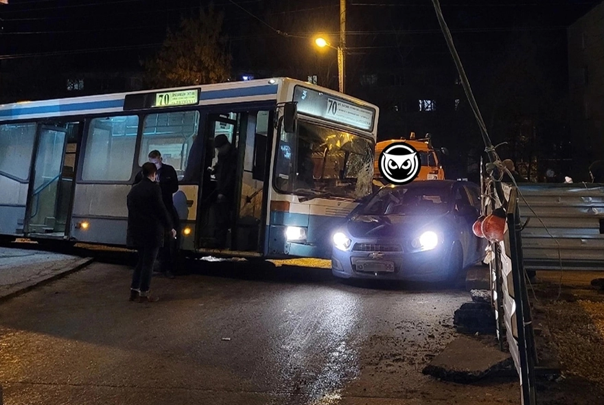 Автобус протаранил автомобиль Chevrolet в бравый борт. Пострадали ли кто-то в результате этого ДТП, не сообщается.