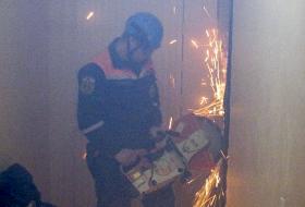 На месте бытового ЧП спасатели открыли дверь специнструментом и мама попала к ребенку.
