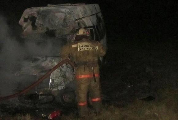 В районе села Веденяпино лоб в лоб столкнулись микроавтобусы Ford Transit, предоставляющий ритуальные услуги, и Hyundai H-1. Первым управлял 44-летний, вторым — 36-летний мужчина. От удара фургон загорелся.