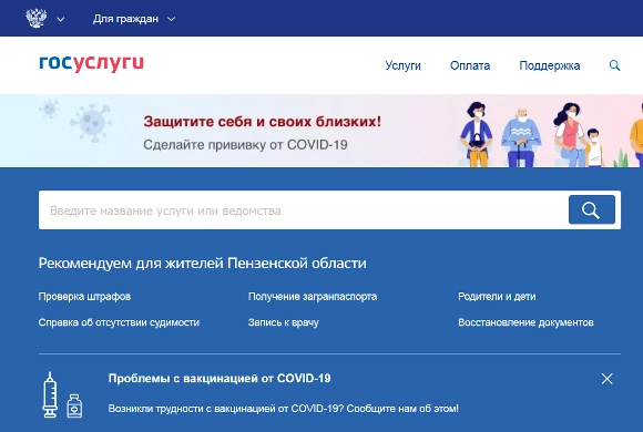 - В верхней части экрана видим баннер «Сделай прививку от COVID-19». Кликаем по нему.