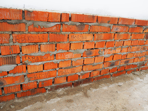 На ее месте теперь стоит новенький молитвенный дом. Чуть дальше возводится храм из красного кирпича. Если заглянуть внутрь, то на каждом кирпичике можно увидеть имена: Николай, Андрей, Ольга, Татьяна, Михаил, Виктор… Их сотни.