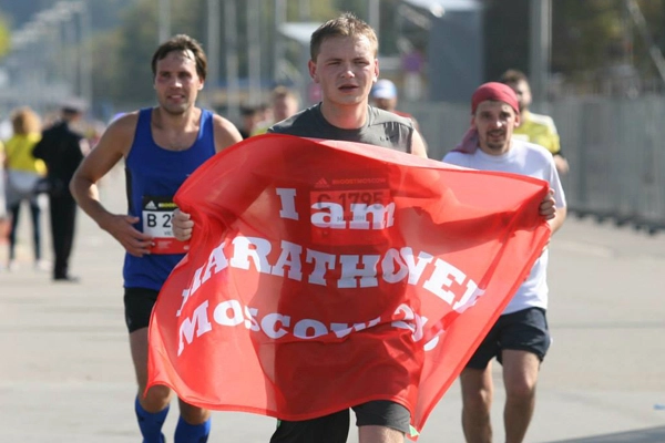 За месяц до мероприятия я распечатал в типографии флаг с надписью «I am marathoner, Moscow 2015». И мы договорились с другом, что за 500 метров до финала он мне его передаст — чтобы финиш получился красивым.