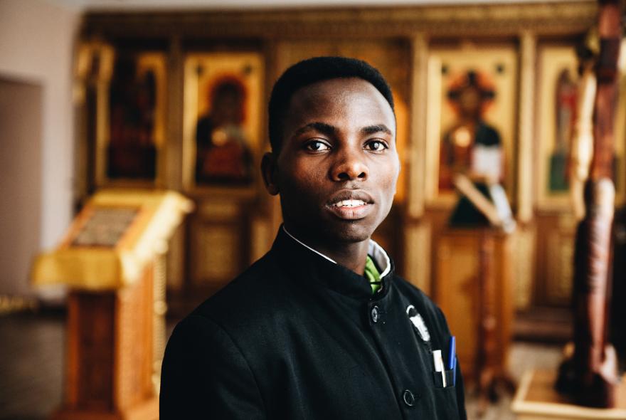 Когда я услышала, что сейчас в аудиторию пригласят Тита и Захарию, подумала, что речь идет о монахах. Очень уж редкие имена, такие встретишь разве что в монастырях. Но к нам вышли два темнокожих парня. Один приехал в Пензу из Кении, второй – из Камеруна. Титус Мутеа Баариу и Захарий Наполеон Фудо – так на самом деле зовут молодых людей. До поступления в семинарию они не знали ни слова по-русски. С Титом и Захарией (это церковнославянские варианты их имен) нам пришлось общаться через переводчиков.
