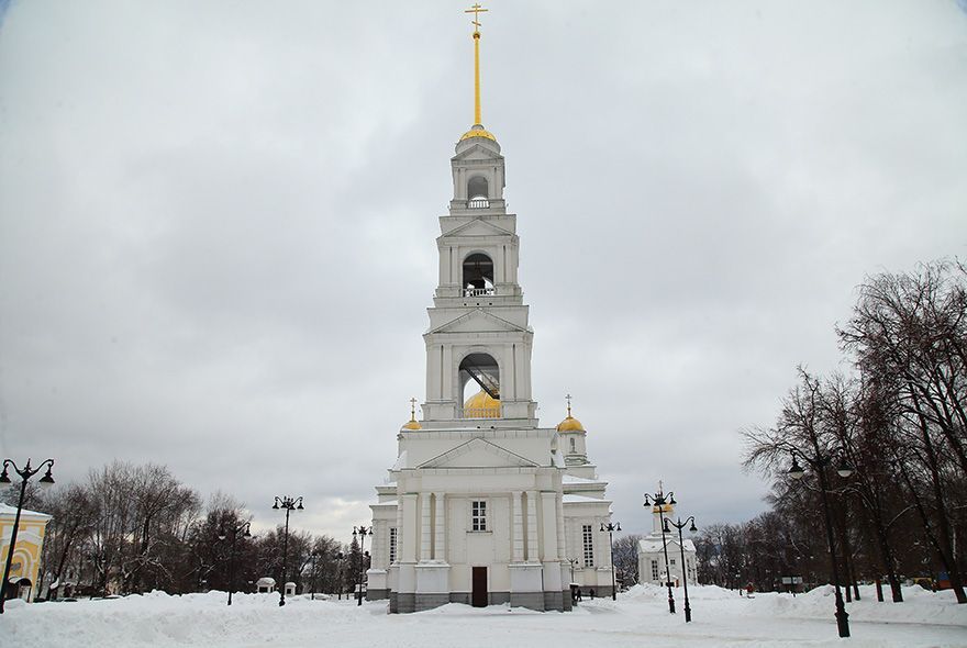 Главное украшение площади – Спасский кафедральный собор, устремивший свои золотые купола и шпиль колокольни в небеса. Возведен он был в 2014 году на месте взорванного в 1934-м. Еще раньше, в 2012-м, построили колокольню. И уже близки к завершению работы по росписи внутренней части храма работниками творческой мастерской «ЦарьГрад». В центре, под куполом, Лик Спасителя, рядом – шестиметровые архангелы. Смотришь вверх, и душа замирает – восторг, удивление, радость!