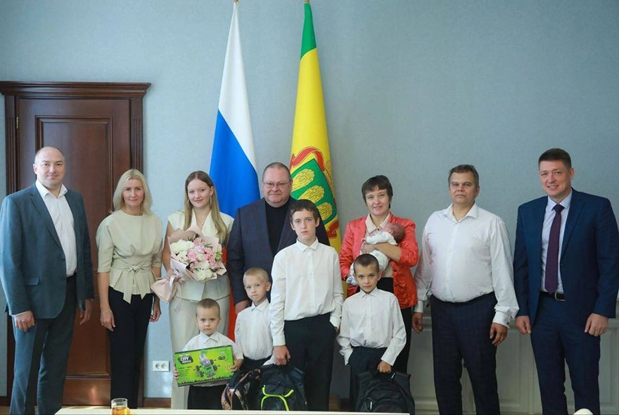 Даша, Алексей, Валерий, Иван, Михаил и малыш Матвей и их родители стали гостями главы региона. Шестилетнему Ивану 1 сентября впервые предстоит отправиться на школьный урок. Олег Мельниченко вручил ему «набор первоклассника».